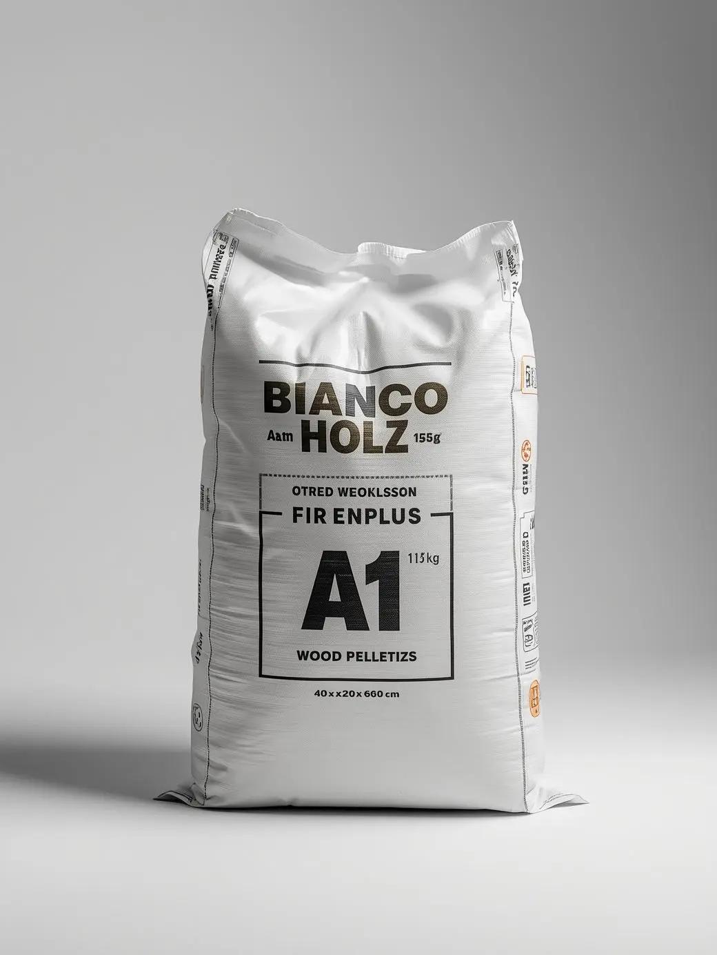 Pellet BIANCO HOLZ in abete 100% scortecciato, certificato ENplus A1. Bancale da 75 sacchi da 15 kg. Alto potere calorifico, ceneri <0,7%, ideale per stufe e caldaie
