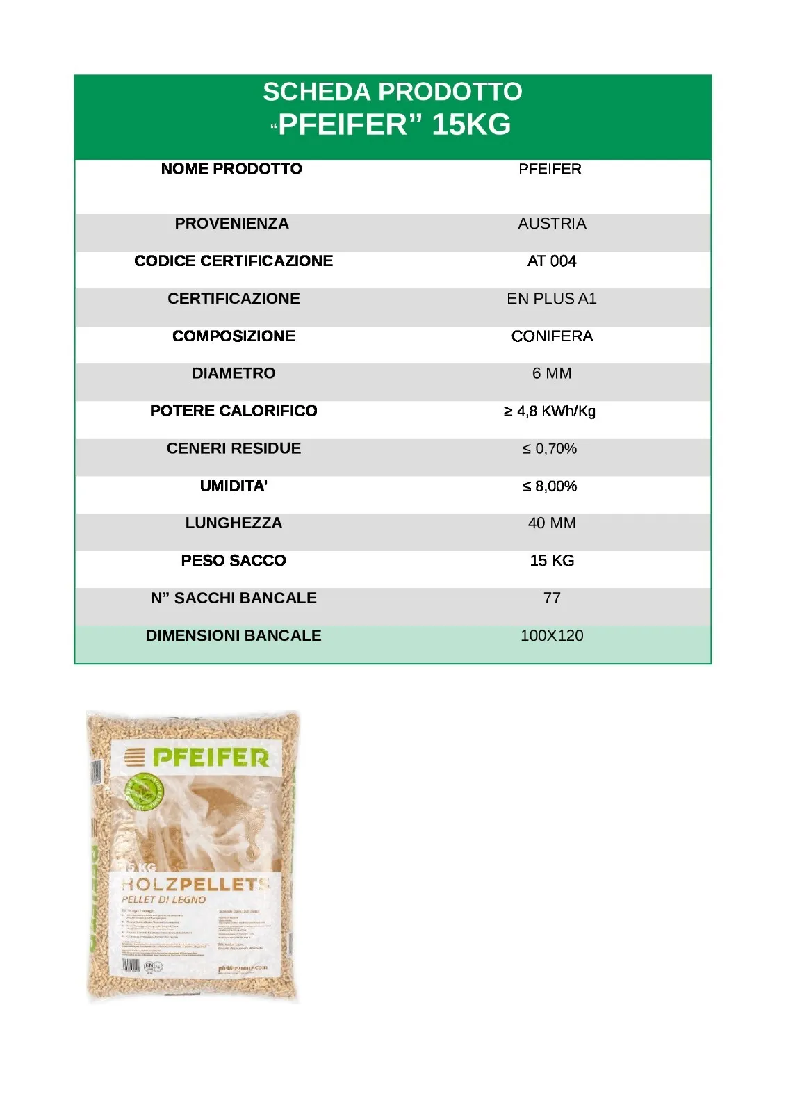 Pellet di Abete Austriaco Certificato Pfeifer 15 Kg al sacco Prestagionale